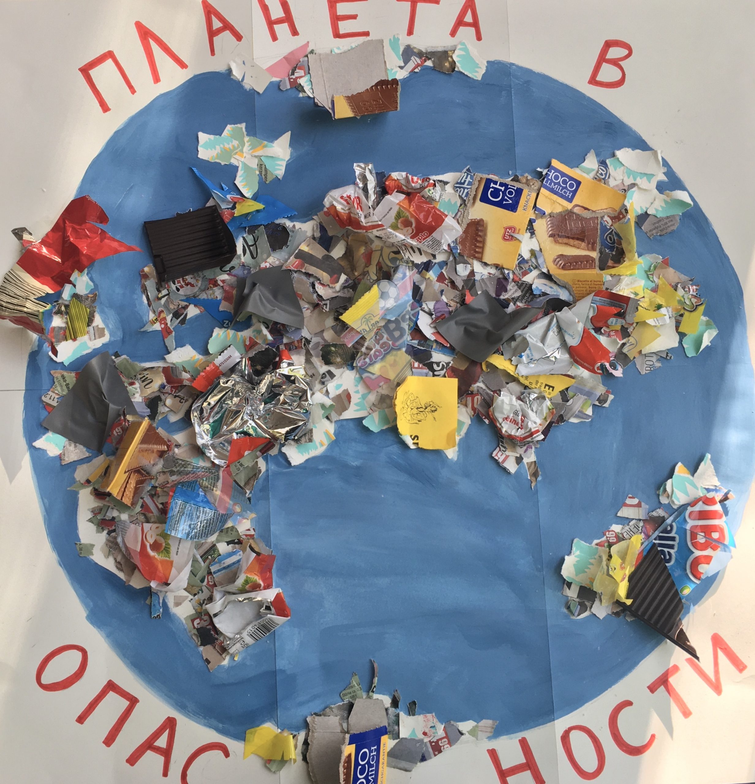 “Мы создали инсталляцию, которая привлекает внимание к экологическим проблемам современного мира. На ней изображена наша земля, перегруженная мусором. Таким образом мы пытались показать влияние человечества на нашу планету” — Альберт.